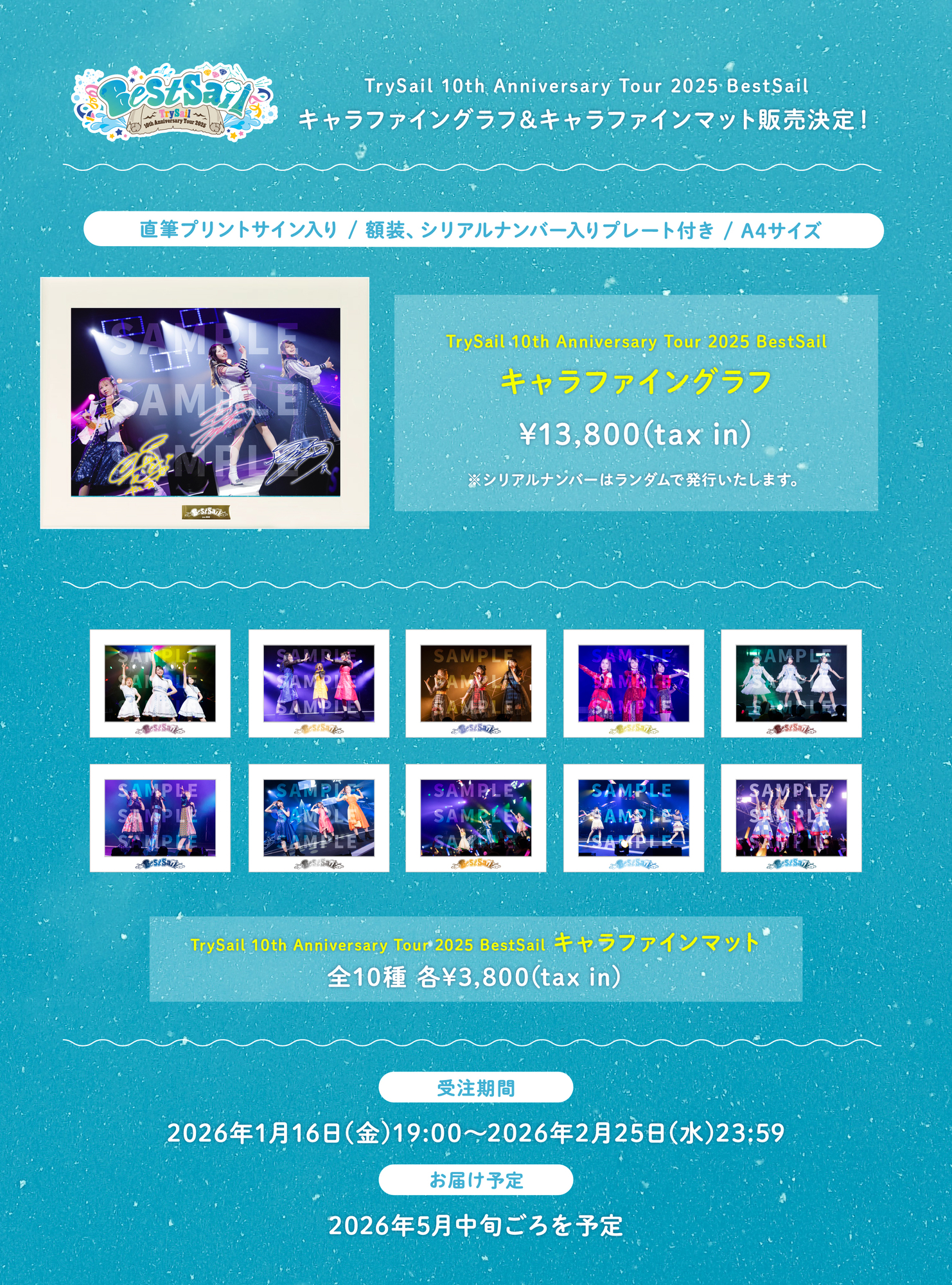 ミュージックレインモールにて「LAWSON presents TrySail 10th Anniversary Tour 2025 “BestSail“」キャラファイングラフ&キャラファインマットの販売が決定いたしました!